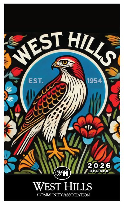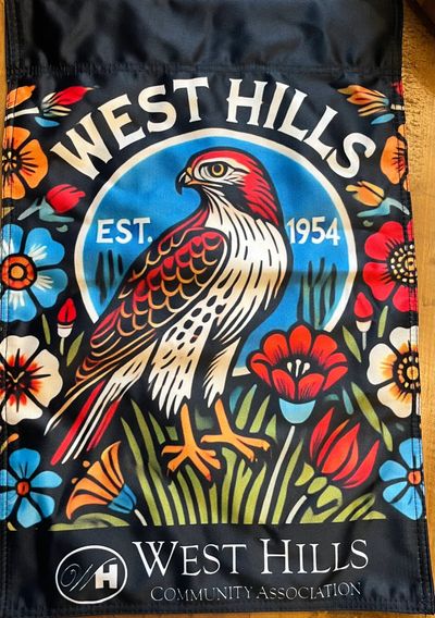 Our 2026 WHCA Yard Flag Fundraiser is ready to go and is only available to paid members. In addition to supporting your WHCA, you will be able to proudly display this beautiful yard flag and stand. This vibrant flag highlights the Red Hawk we see throughout our West Hills community. When you purchase the 2026 flag, it INCLUDES your 2026 membership.
